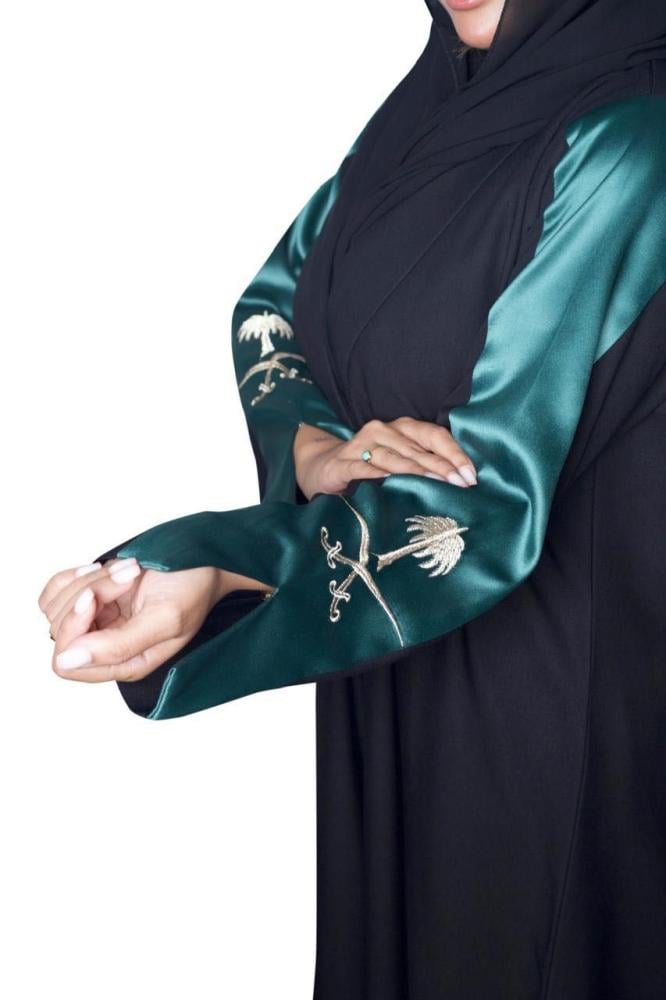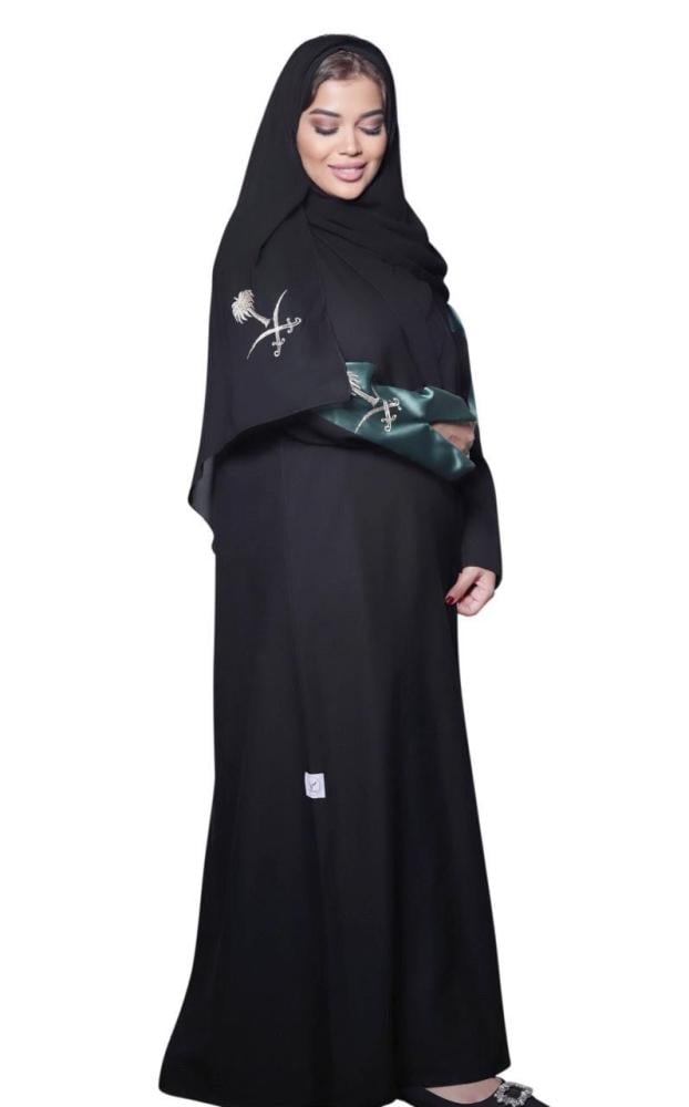 عبايه سعودي سوداء فاخرة مزينة بأكمام باللون الأخضر المطرزة بشعار المملكة، تضيف لمسة وطنية أنيقة ومميزة. تصميم مفتوح يجمع بين الراحة والفخامة، مع خامة عالية الجودة ومقاسات متعددة تناسب جميع الأجسام.